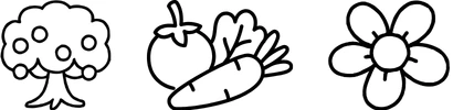 Gemüse, Obstbäume, Blühpflanzen