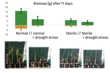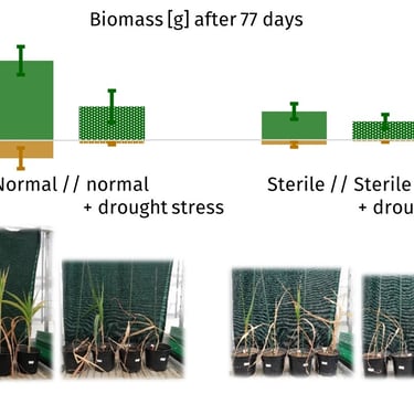 Die Pflanzen in der sterilisierten Erde zeigen ähnliche Verluste in der Biomasse wie Pflanzen, die Trockenstress ausgesetzt wurden: